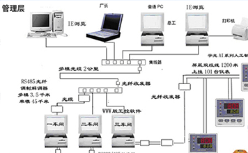 關(guān)鍵詞:光纜 監(jiān)控 以太網(wǎng)一、概述四川制藥股份有限公司在全廠局域網(wǎng)設(shè)計(jì)中采用光纖深入動(dòng)力車(chē)間兩臺(tái)喬納森公司550空壓機(jī)運(yùn)行情況控制,加入調(diào)度管理系統(tǒng),將以太網(wǎng)滲透到工業(yè)現(xiàn)場(chǎng)從而實(shí)現(xiàn)辦公自動(dòng)化與工業(yè)自動(dòng)化的無(wú)縫結(jié)合,給廠部調(diào)度室、總工隨時(shí)決策提供幫助。充分運(yùn)用AI系列智能儀表組建現(xiàn)場(chǎng)總線型計(jì)算機(jī)監(jiān)控系統(tǒng)連接到局域網(wǎng)上共享信息資源。使車(chē)間、調(diào)度室、廠辦計(jì)算機(jī)組成對(duì)等以太網(wǎng),實(shí)現(xiàn)資源共享管控一體化。二、系統(tǒng)架構(gòu)我們將傳統(tǒng)的服務(wù)器下放至現(xiàn)場(chǎng)充當(dāng)服務(wù)器,計(jì)算機(jī)中安裝WWW網(wǎng)絡(luò)版工控軟件,現(xiàn)場(chǎng)的儀表數(shù)據(jù)以數(shù)字信號(hào)的形式由服務(wù)器采集并保存于服務(wù)器中。 調(diào)節(jié)器AI-808AXL2L2S4巡檢儀AI-706MAJ0J0J0L2L2S AI表采集的壓力、流量、溫度、位移、液位、流量等數(shù)據(jù)存儲(chǔ)在客戶服務(wù)器WWW網(wǎng)絡(luò)版工控軟件數(shù)據(jù)庫(kù),在計(jì)算機(jī)上按裝100M網(wǎng)卡,接上光纖收發(fā)器,通過(guò)四芯光纜送至500米(可達(dá)