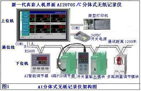 1、上位機(jī):新一代真彩人機(jī)界面AI-2070S/C分體式無紙記錄儀,使用宇電AI系列調(diào)節(jié)儀表作為測控輸入模塊實(shí)現(xiàn)多通道數(shù)字全屏顯示。測控儀表不僅包括各類溫度、壓力、等信號,也包括人工智能PID調(diào)節(jié)、可按需要配置,任意組合;