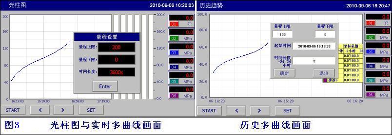 實時、歷史組合多趨勢曲線在【實時曲線】【歷史曲線】按通道順序排列1、2、3、4、6固定組合在一起,直觀的顯示相關(guān)通道間的變化關(guān)系。點擊【數(shù)據(jù)框】返回【實時畫面】通道。在【歷史曲線】畫面點擊【S】可選擇啟用單條或4條曲線,顯示趨勢變化;設(shè)置查詢起始時間及時間跨度;不同的數(shù)據(jù)量程范圍啟用單條查詢。通過【上一頁】,【下一頁】的切換組合通道。