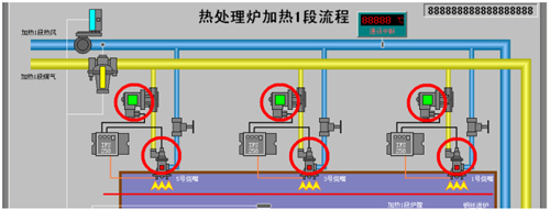 該熱處理加熱監(jiān)控系統(tǒng)使用了4臺AI-301ME5I5I5I5I5I5共37個I/O點,主要控制和檢測冷卻風機,加熱器,煤氣噴嘴電磁閥,進水電磁閥,煤氣濃度報警器等多個開關量輸入輸出設備。