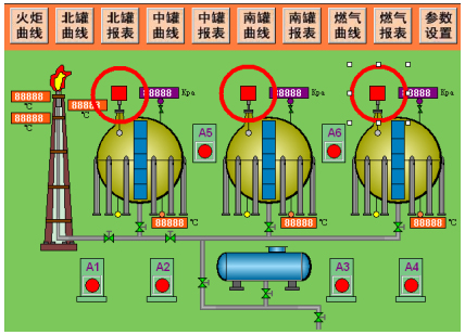 某油田貯藏罐使用一臺AI-301M輸入模塊和觸摸屏電腦CE系統(tǒng)采集貯藏罐高高液位報警的開關量在監(jiān)控軟件上顯示。