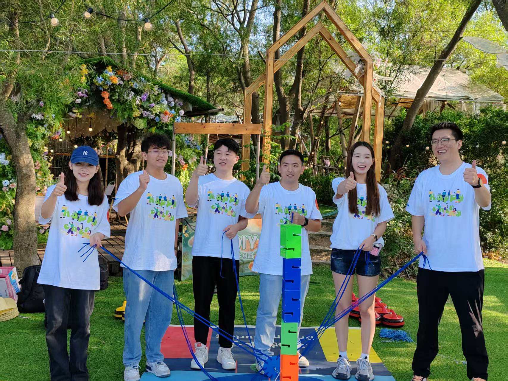 在合力筑塔環(huán)節(jié),團(tuán)隊(duì)成員需要通力協(xié)作,用繩索控制塔鉤,將一塊塊積木穩(wěn)穩(wěn)壘高。這不僅考驗(yàn)著每個(gè)人的專注力,更需要團(tuán)隊(duì)的默契配合。當(dāng)積木塔在共同努力下拔地而起,那份成就感讓每個(gè)團(tuán)隊(duì)成員的臉上都綻放出燦爛的笑容。