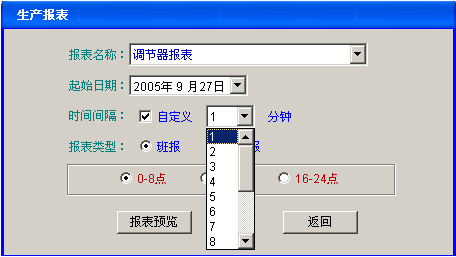 (7)報(bào)表:提供1~15分鐘;30分鐘;60分鐘;班報(bào)表;日?qǐng)?bào)表,提供打印功能。