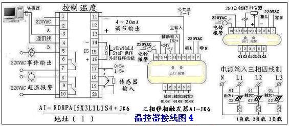 根據(jù)系統(tǒng)的要求我們可以選用各種儀表類型如AI-808PAI5X3L1L1S4+AIJK3,利用AI-808P的主輸出作為AIJK6的控制信號,來控制加熱輸出,AI-808P智能調(diào)節(jié)器增加了30段時間程序控制功能,前30段可編程為自動跳轉(zhuǎn)執(zhí)行,實現(xiàn)循環(huán)控制,采用先進的模塊化設(shè)計,具備5個功能模塊插座:輔助輸入、主輸出、報警、輔助輸出及通訊,