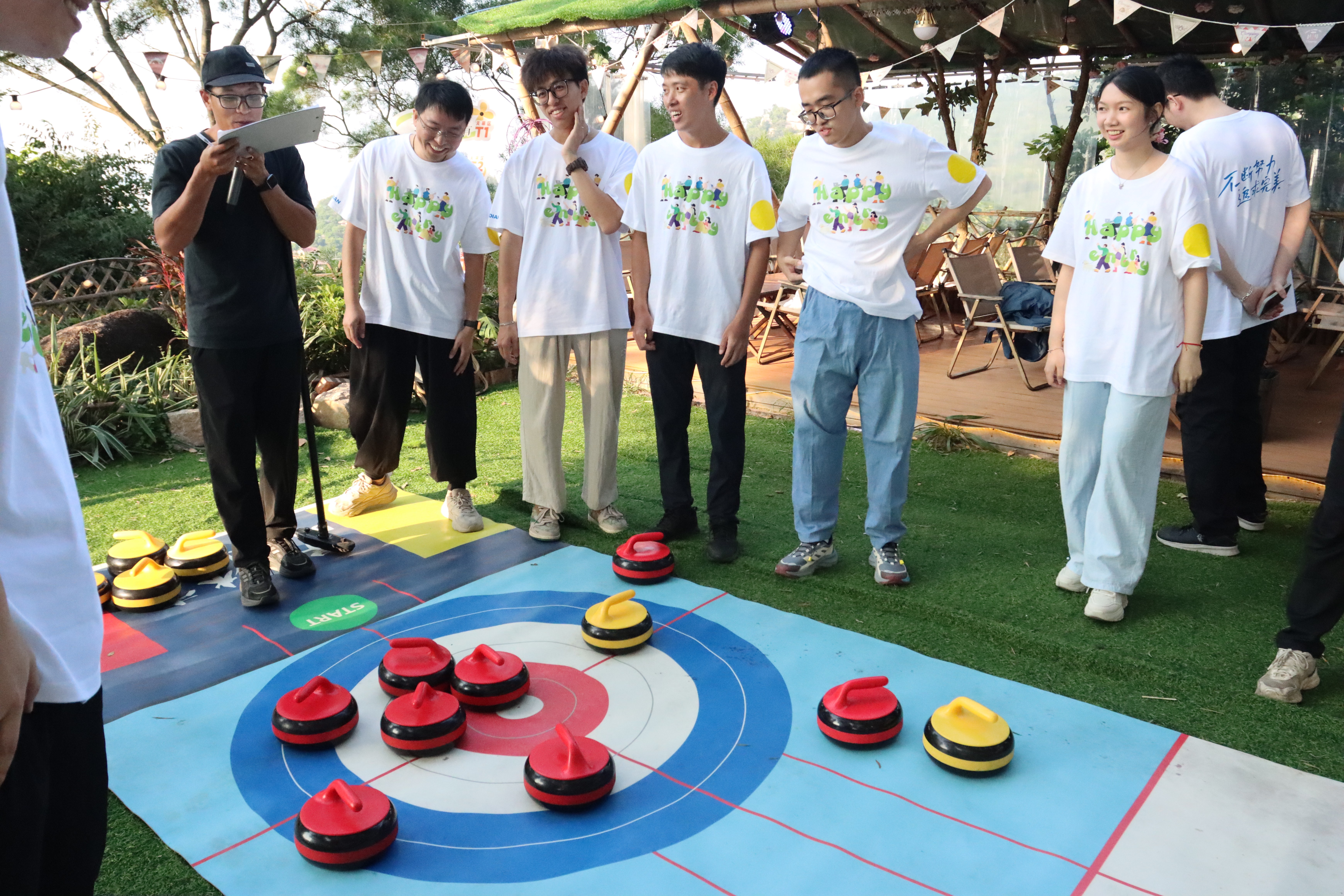 作為活動的核心挑戰(zhàn)項(xiàng)目,旱地冰壺備受矚目。在教練的指導(dǎo)下,新同事們化身“戰(zhàn)略家”,從生疏到熟練,每一次精準(zhǔn)的投擲、每一次成功的防守,都凝聚著團(tuán)隊(duì)的智慧與默契。賽場上的吶喊與歡呼,是集體榮譽(yù)感最直接的體現(xiàn)。